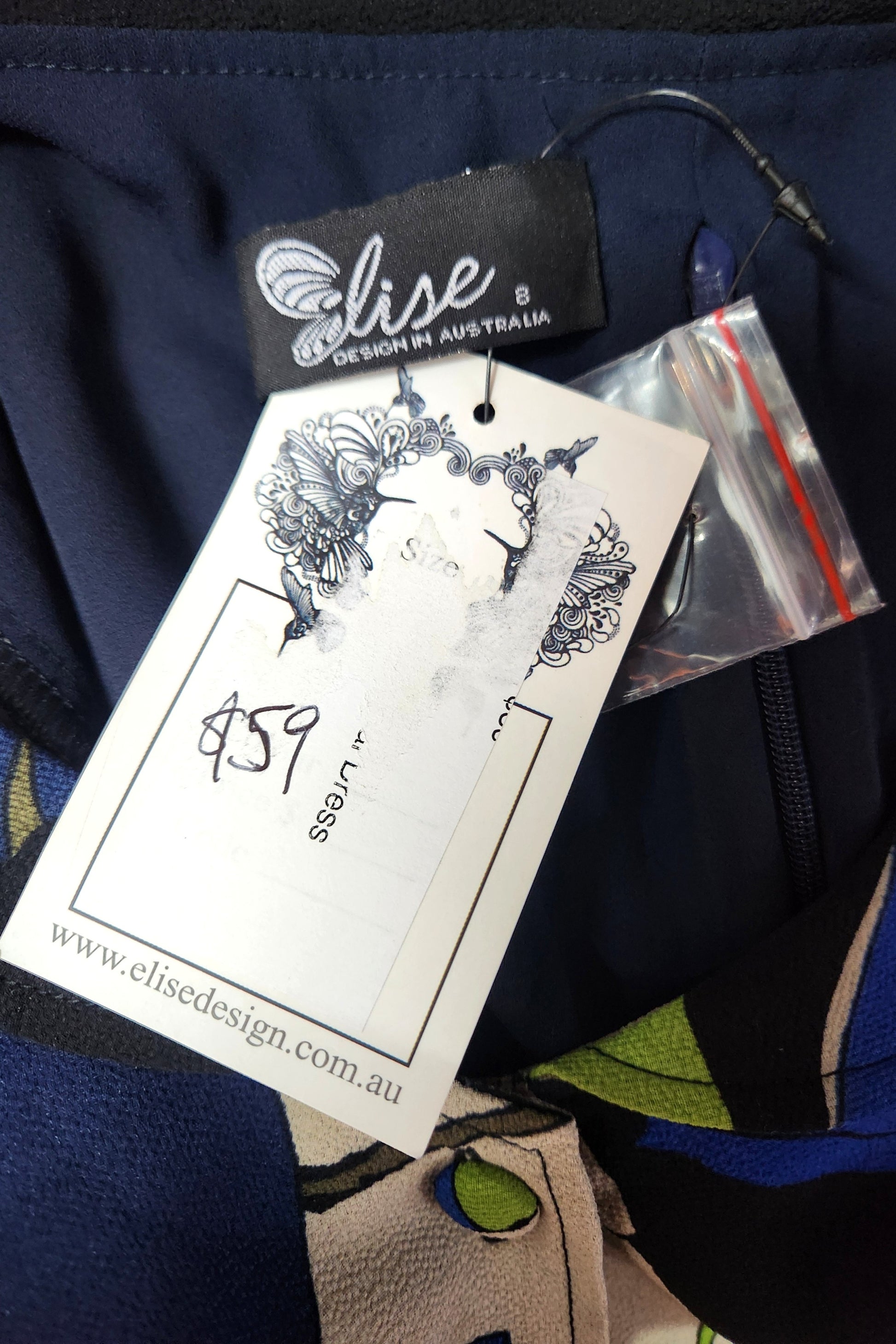 This is a sample dress from the Elise Design label. Size 8. polyester crepe, fully lined.